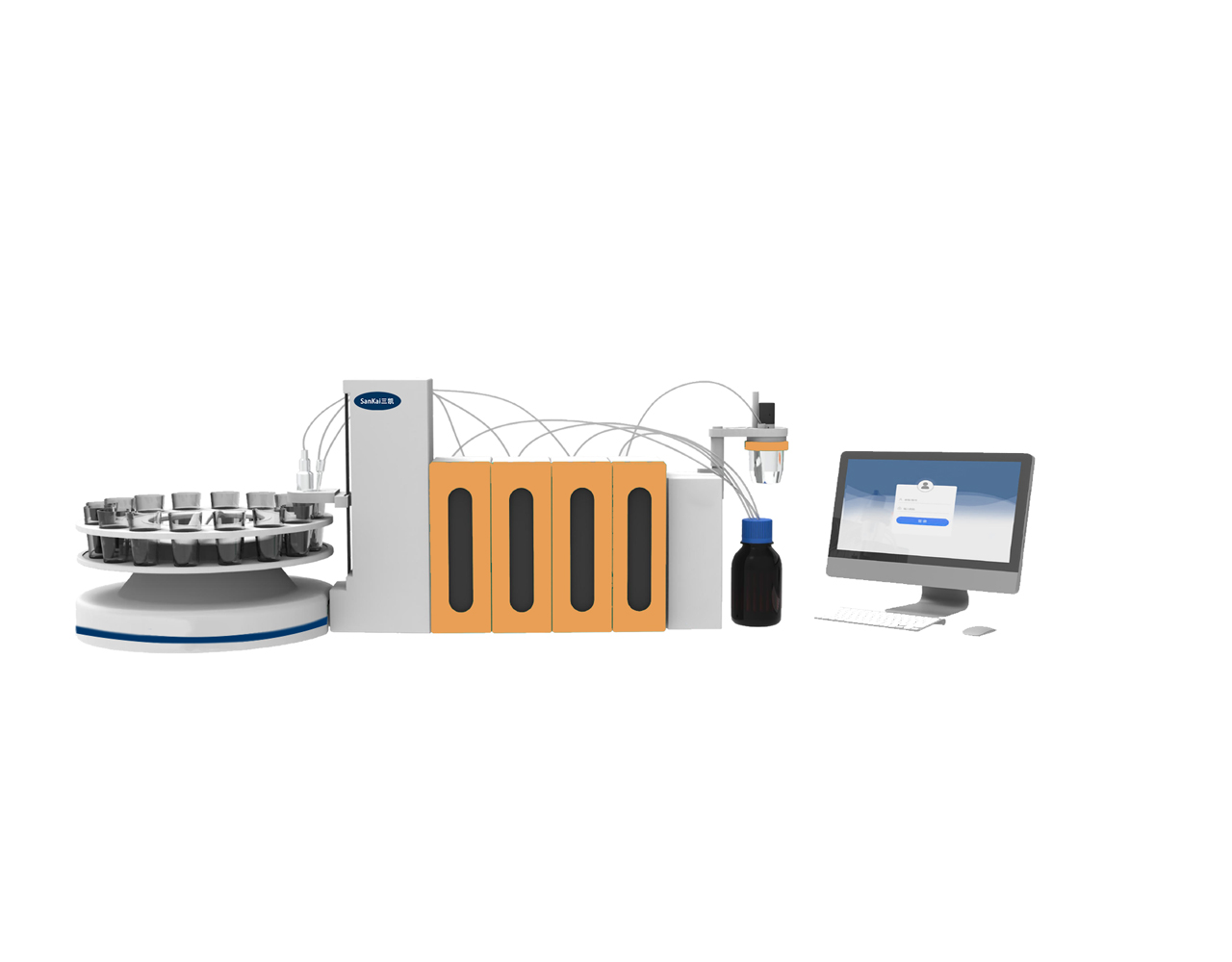 混合同步進液系統(tǒng): 國際領先的同時4通道進樣,最多支持拓展8通道模塊化組合進液系統(tǒng)。滴定劑、添加劑或 輔助試劑任意組合使復雜的進液添加需求徹底擺脫手工操作。